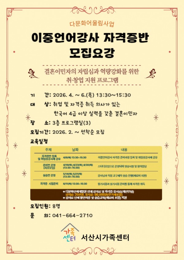 | 제목 | 다문화어울림사업 이중언어강사 자격증반 |