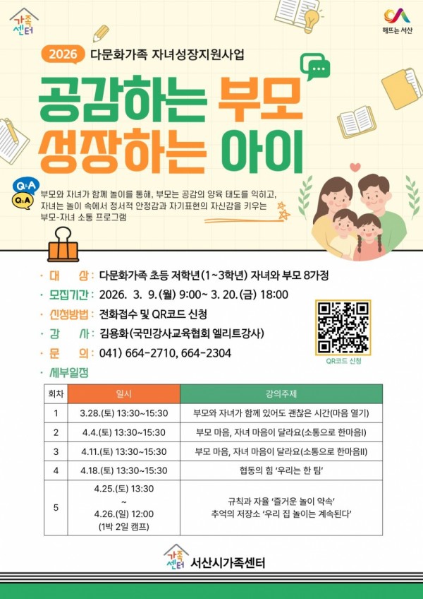 홍보 2026년 다문화가족 자녀성장지원사업 「공감하는 부모, 성장하는 아이」